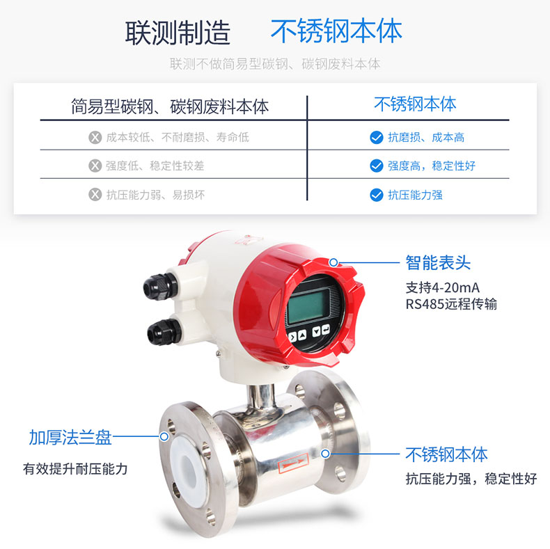 聯(lián)測LDG-SIN電磁流量計適用于化工助劑、海綿城市、給水排水、水利灌溉、水處理、污水處理(環(huán)保污水控制、化工污水、電鍍污水)、造紙漿液(紙漿)、泥漿、醫(yī)藥原料、食品等工農(nóng)業(yè)的生產(chǎn)公司過程流量測量和控制,標(biāo)配485通訊功能。