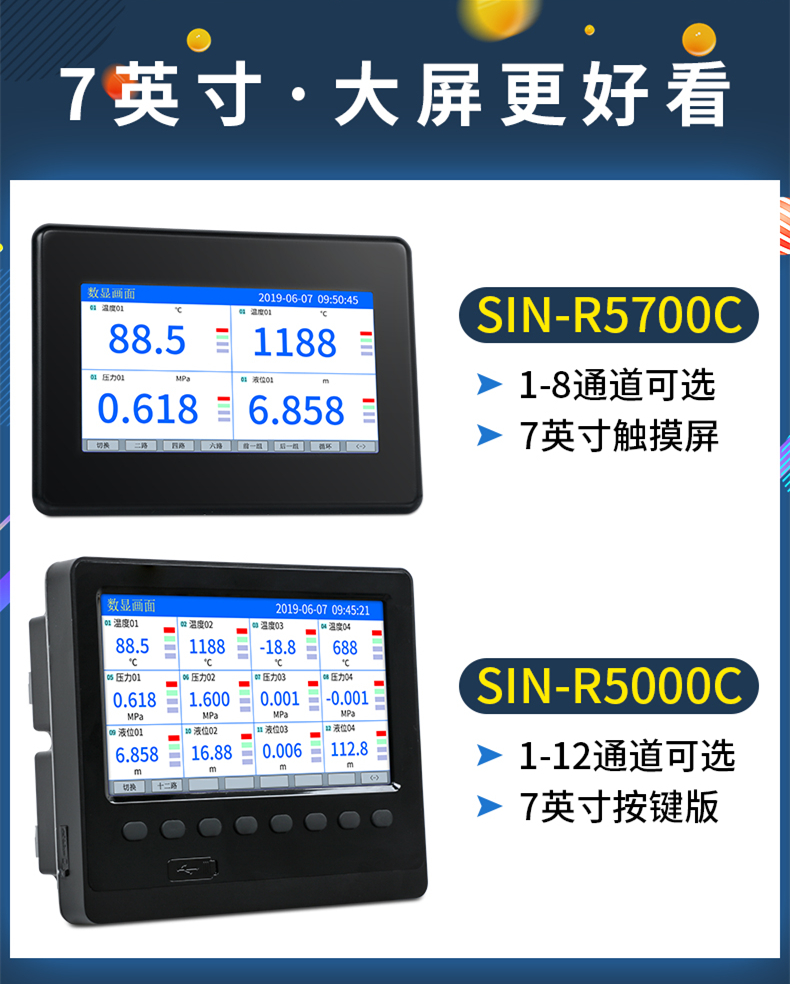 當(dāng)前位置: 首頁 > 無紙記錄儀 → 聯(lián)測SIN-R5700C觸摸屏7英寸無紙記錄儀 →